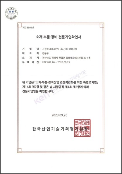 소재부품∙장비 전문기업확인서소재부품·장비(소부장) 전문기업 확인서는 소재, 부품, 장비 산업 분야에서 특정 전문성을 갖춘 기업임을 정부가 공식적으로 인정하는 서류입니다. |