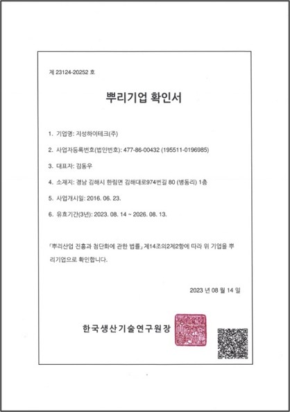 뿌리기업 확인서'뿌리산업'은 나무의 뿌리처럼 겉으로 드러나지 않지만, 자동차, 조선, IT, 반도체 등 핵심 제조업의 경쟁력을 좌우하는 기초 공정기술을 의미합니다. |